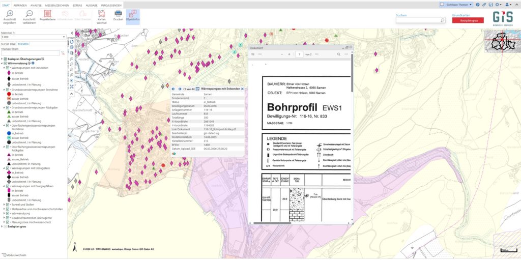 Der Kanton Obwalden hat die bestehende Webkarte zur Wärmenutzung erweitert. Sie dient als technische Informations- und Planungsgrundlage und zeigt sowohl die bestehenden Wärmepumpenanlagen im Kanton als auch die für den Bau zugelassenen Gebiete.