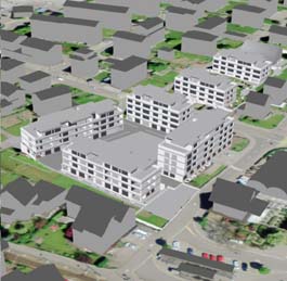Beim Klick auf den Link Fliegersiedlung Stans werden die Daten (25MB) lokal auf den Rechner heruntergeladen. Interessante Funktionen sind: Vergleich alte und neue Situation, Etagenansicht, Sonnenstand und Schattenwurf.